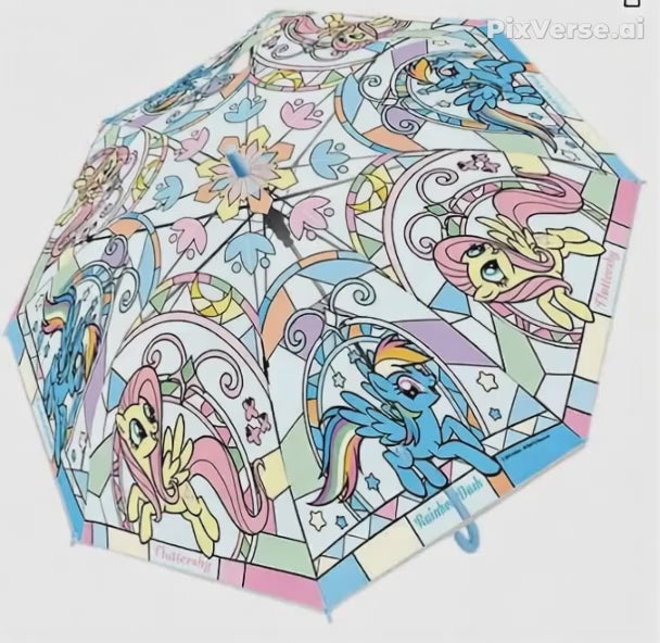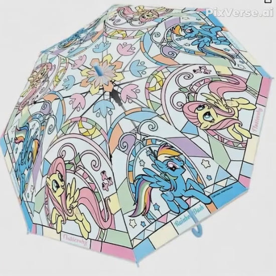 Hasbro Stained Glass My Little Pony Transparent Stick Umbrella Auto Open.
